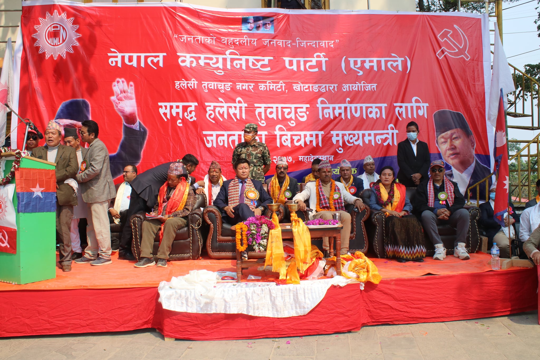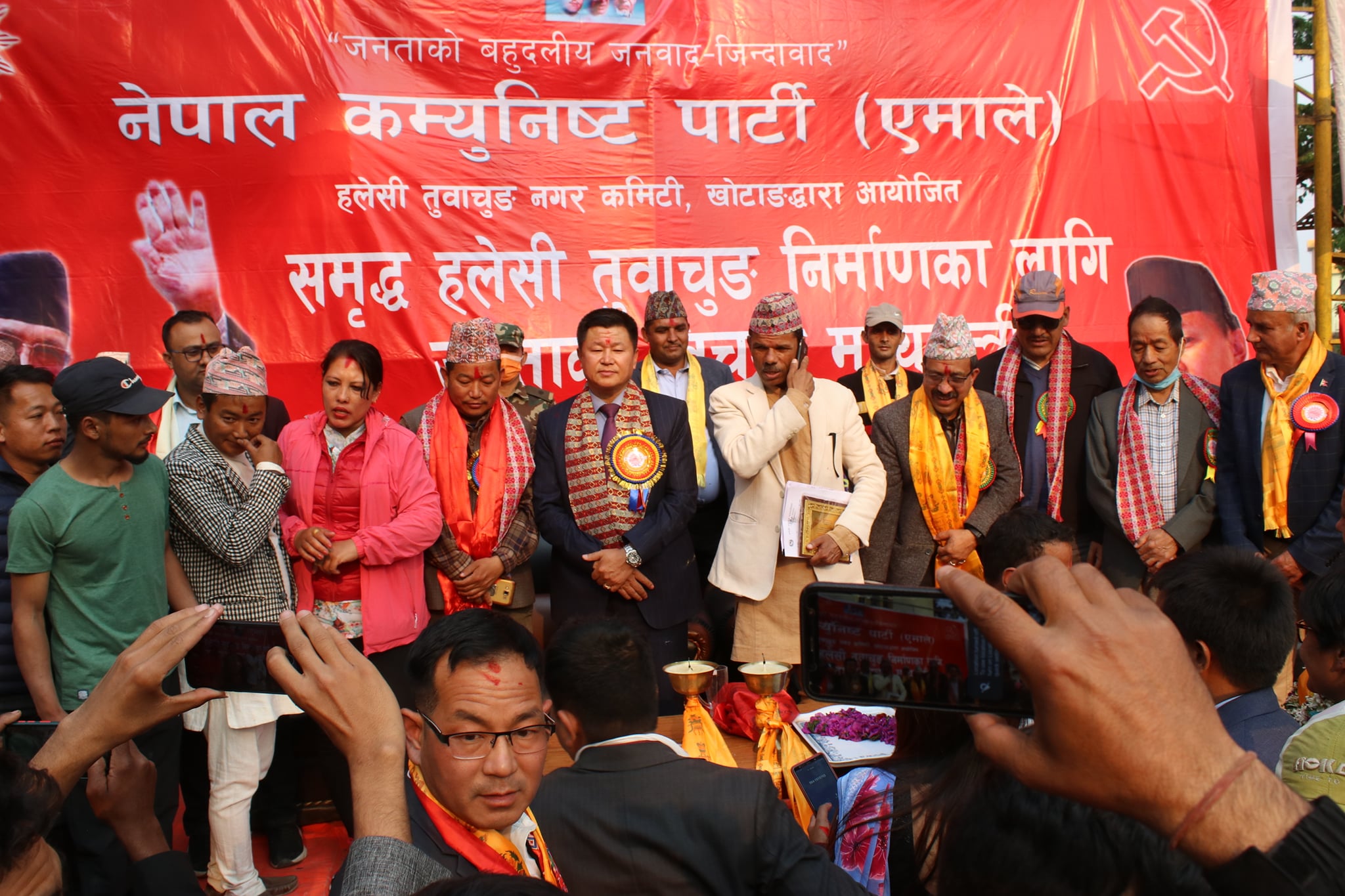 नेकपा (एमाले) हलेसी तुवाचुङ नगर कमिटीद्वारा आयोजित कार्यक्रममा एमाले संसदीय दलका प्रमुख सचेतक विशाल भट्टराई, प्रदेश नम्बर १ की सामाजिक विकासमन्त्री उषाकला राई, संविधानसभा पूर्वसदस्य तथा प्रदेश कमिटी सदस्य पाँचकर्ण (पीके) राई, प्रदेश कमिटी सदस्य हरि पोखरेल, एमाले जिल्ला अध्यक्ष रामप्रसाद दंगाल, युवा संघ नेपाल पूर्वअध्यक्ष रमेश पौडेललगायत जिल्ला र नगरका नेता तथा कार्यकर्ताको बाक्लो उपस्थिति रहेको थियो ।