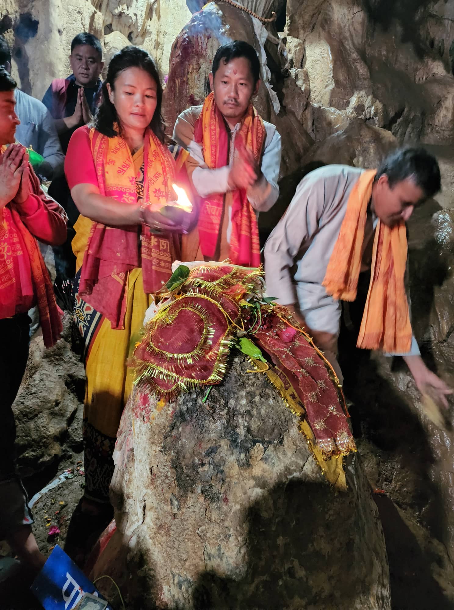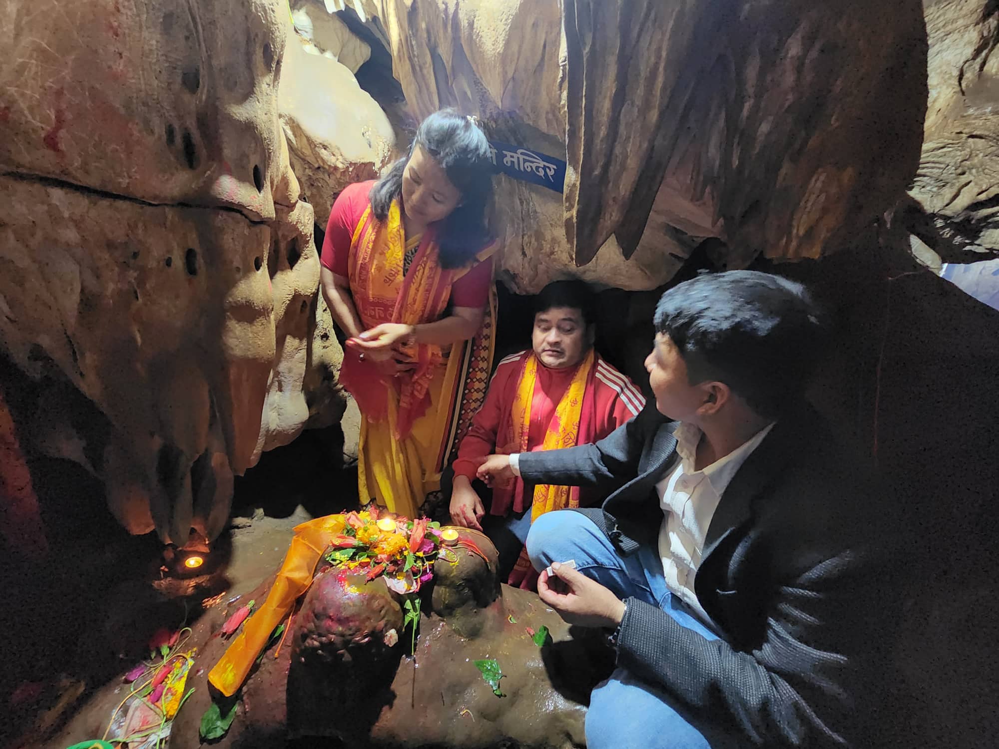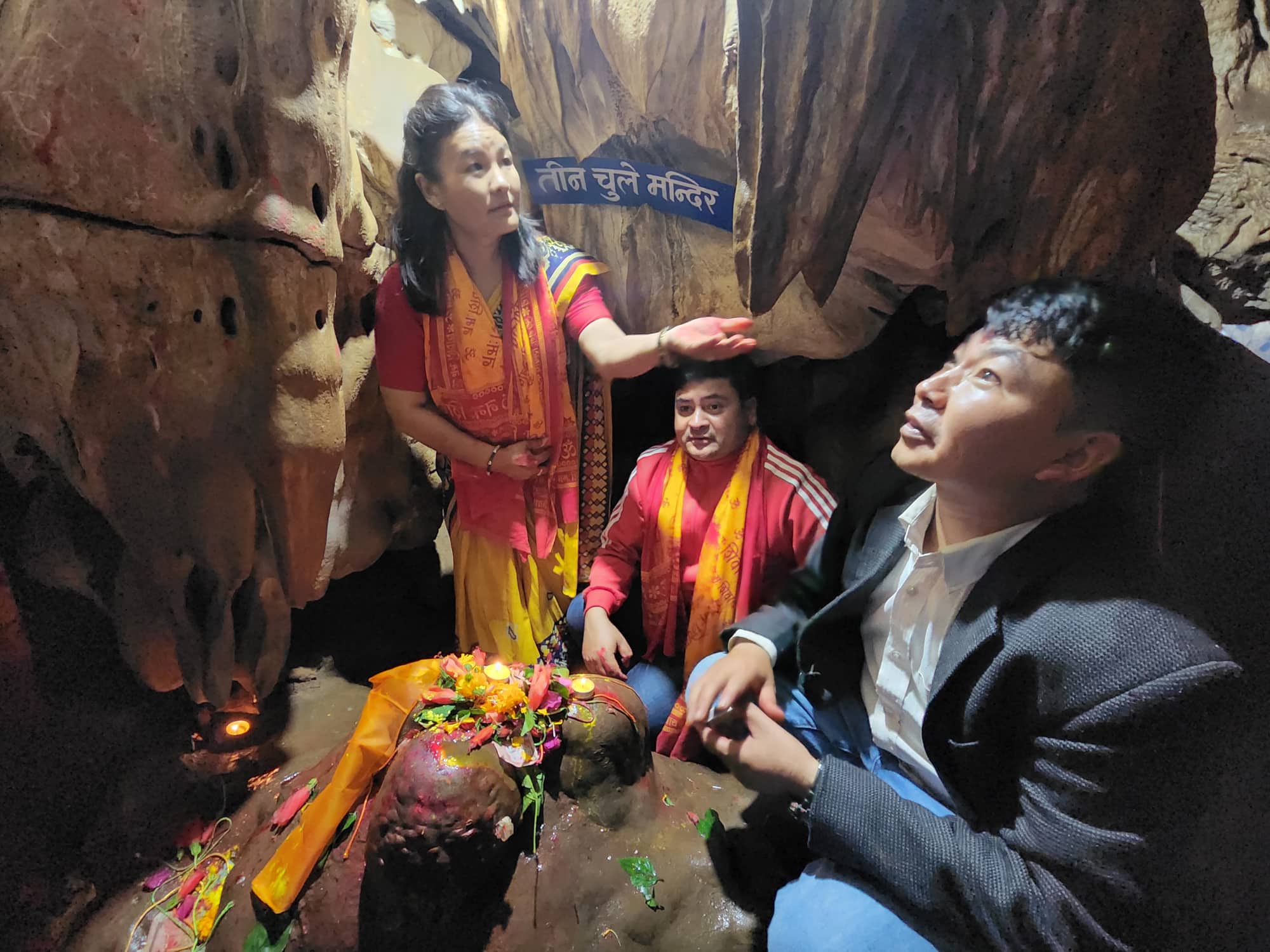 दुर्छिम (खोटाङ) । हलेसी तुवाचुङ नगरपालिकाका नगर प्रमुख बिमला राईले ताराखसे किरातेश्वर महादेव गुफा मन्दिरमा पूजाआजा गरेकी छन् । नगरप्रमुख राईले गुफामा रहेको तीन चुलामा केशरी चढाउँदै बत्ती बालेर पूजाआजा गरेकी थिइन् ।
