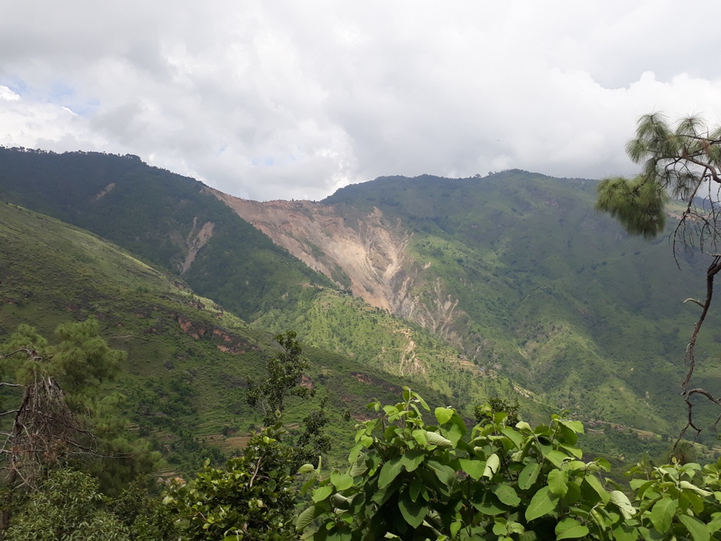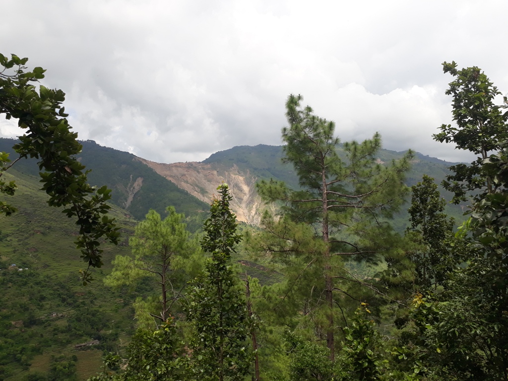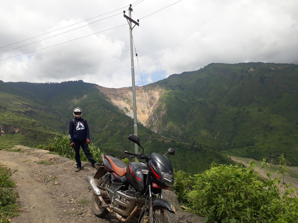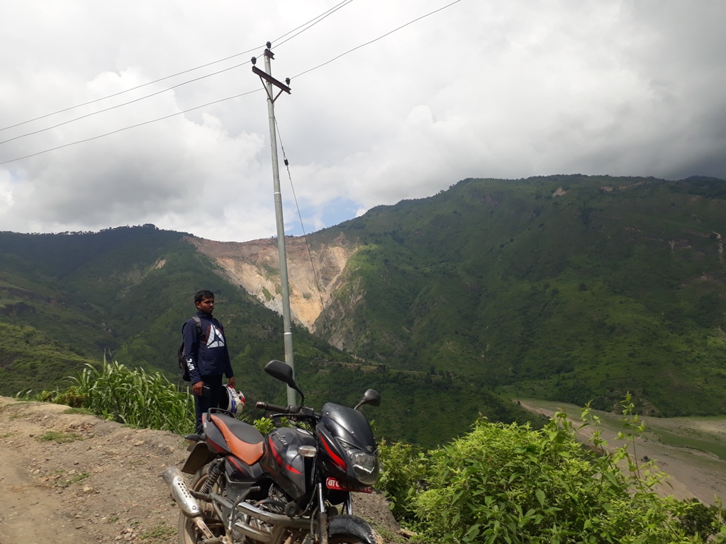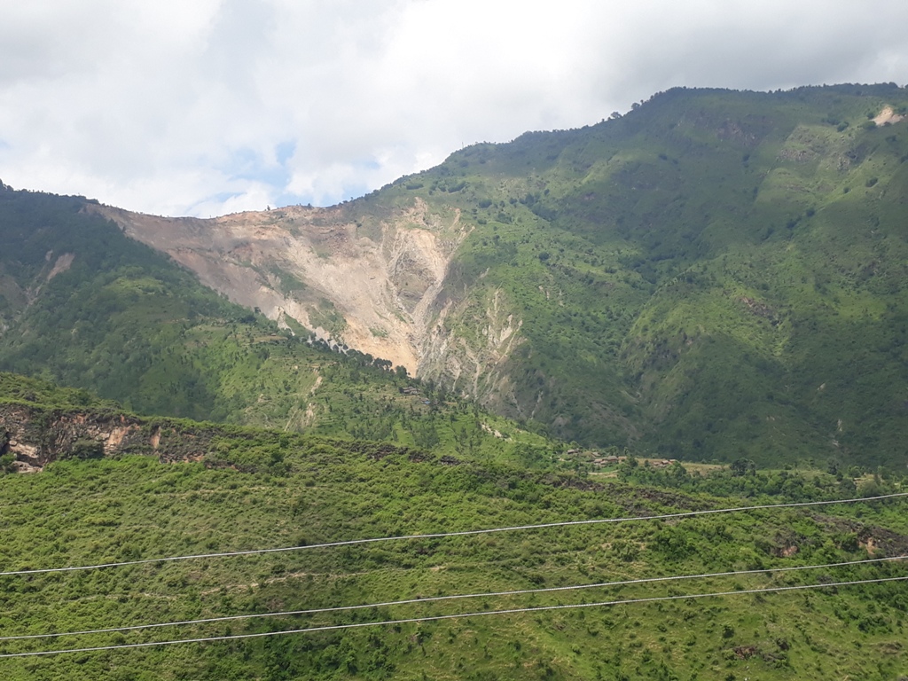हामी ओह्रालिँदै गर्दा सुनकोसीपारि उदयपुरका पालिकाका वनपाखा चिरैचिरा परेको देखियो । ती गाउँठाउँमा सडक सञ्जाल विस्तार गर्दा वनपाखा चिरैचिरा परेको प्रस्ट हुन्थ्यो । कतिले सोच्लान्– यस्ता भीरपाखामा पनि सडक खनेर के होला र ? हामी गुडिरहेको सडक हलेसी तुवाचुङ नगरपालिका–५ दुर्छिममा पर्ने छोक्माला, लाटुङवासीका लागि राजमार्ग नै हो । हामी छोक्माला सिरान पुगेपछि दुर्छिम पहिरो देख्न थाल्यौं । रिजाल सरलाई मोटरसाइकल रोक्न लगाई फोटो खिचें । सानो छँदा ‘साह्रै ठूलो भन्नु दुर्छिमको पहिरो, त्योभन्दा नि तिम्रो माया गहिरो’ भनेर गीत गाइन्थ्यो । तर, आज दुर्छिम पहिरो नजिकबाट नियाल्ने मौका मिल्यो । रिजाल सरले पहिरो नियाल्दै भने, ‘यो पहिरो त लभ साइनजस्तो पो देखिँदोरहेछ ।’ मैले सहमति जनाएँ ।