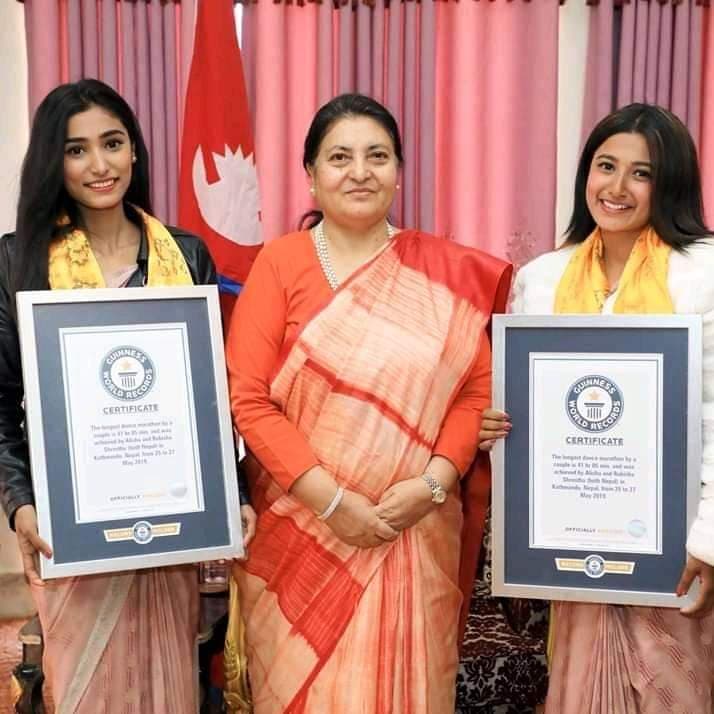 काठमाडौं । लगातार ४१ घन्टा ५ मिनेट जोडी नृत्य (कपल डान्स) गरेर कलंकी काठमाडौंका सहोदार दिदीबहिनी एलिसा श्रेष्ठ र रुविसा श्रेष्ठले गिनिजबुकमा नाम लेखाएका छन् ।