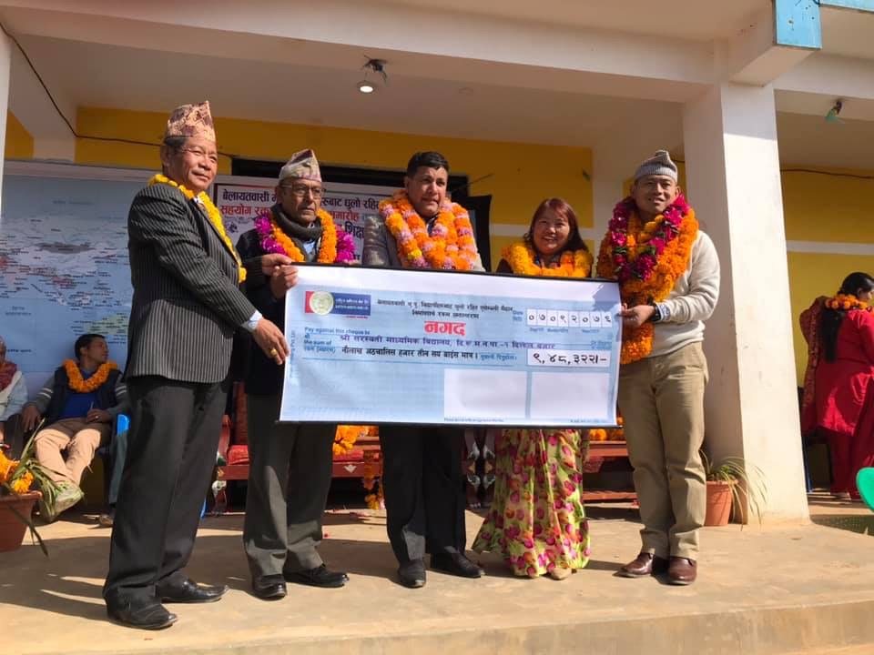 पहिलो चरणको कार्यक्रममा बेलायतवासी स्कुलका पूर्वविद्यार्थीबाट स्कुलको धूलोरहित प्राङ्गण तयार गर्न जम्मा भएको सहयोग रकम मैले औपचारिक रूपमा हस्तान्तरण गर्नु थियो । जुन घडी मैले मेयर दीपनारायण रिजाल, उपमेयर वीणादेवी राई, विद्यालय व्यवस्थपान समिति अध्यक्ष जय सर र विद्यालयका प्रधानअध्यापक ध्यान सरलाई एकसाथ सहयोग रकम हस्तान्तरण गर्न पाएँ । एउटा मीठो अनुभूतिले छोप्यो (अव्यक्त अनुभूति जो जीवनपर्यन्त रहनेछ ।) आफूले दिनरात काम गरेर कमाएको पसिनाको मूल्य अलिकति जोगाएर स्कुलको खातिर सहयोग दिने सबैलाई मैले सम्झें । त्यसमा पनि विशेष संयोजक डा. प्रमोद र कोष जम्मा गर्न भूमिका खेल्नुहुने खगेन्द्र दाइलाई उहाँहरूको योगदानको खुलेरै सबैलाई बताएँ ।