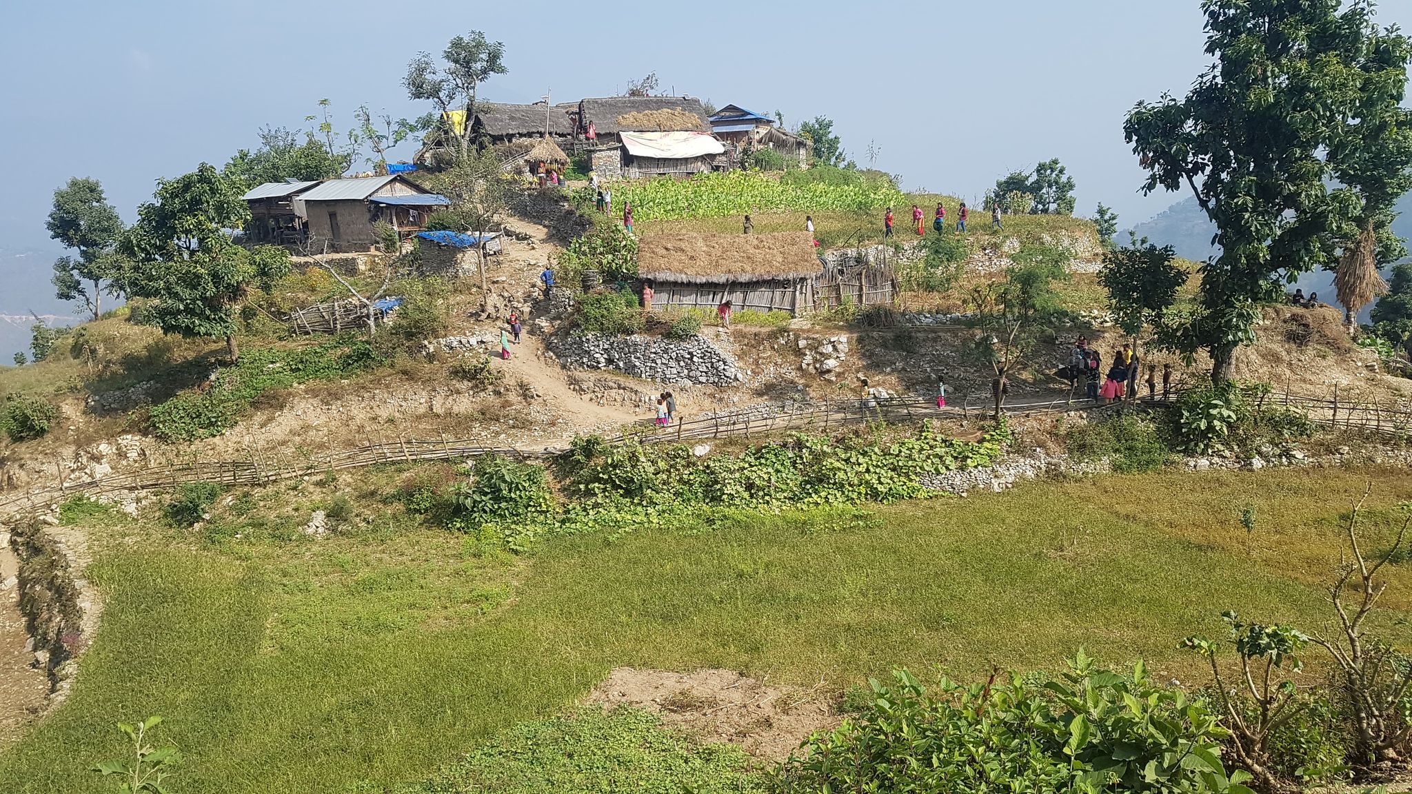 झाप्पाडाँडा पुग्नुभन्दा केही तल खरको छानो भएको घुमाउने बस्ती देखें । अलि माथि पुगेर मैले त्यो बस्तीको तस्बिर लिएको थिएँ । पारिपट्टि ओखलढुंगा र लिब्जुडाँडा प्रस्टै देखिन्थ्यो । कोदाले बारीको पाटा हरिया देखिन्थे । मकैको ढोड राखेको माच पनि देखिन्थे ।