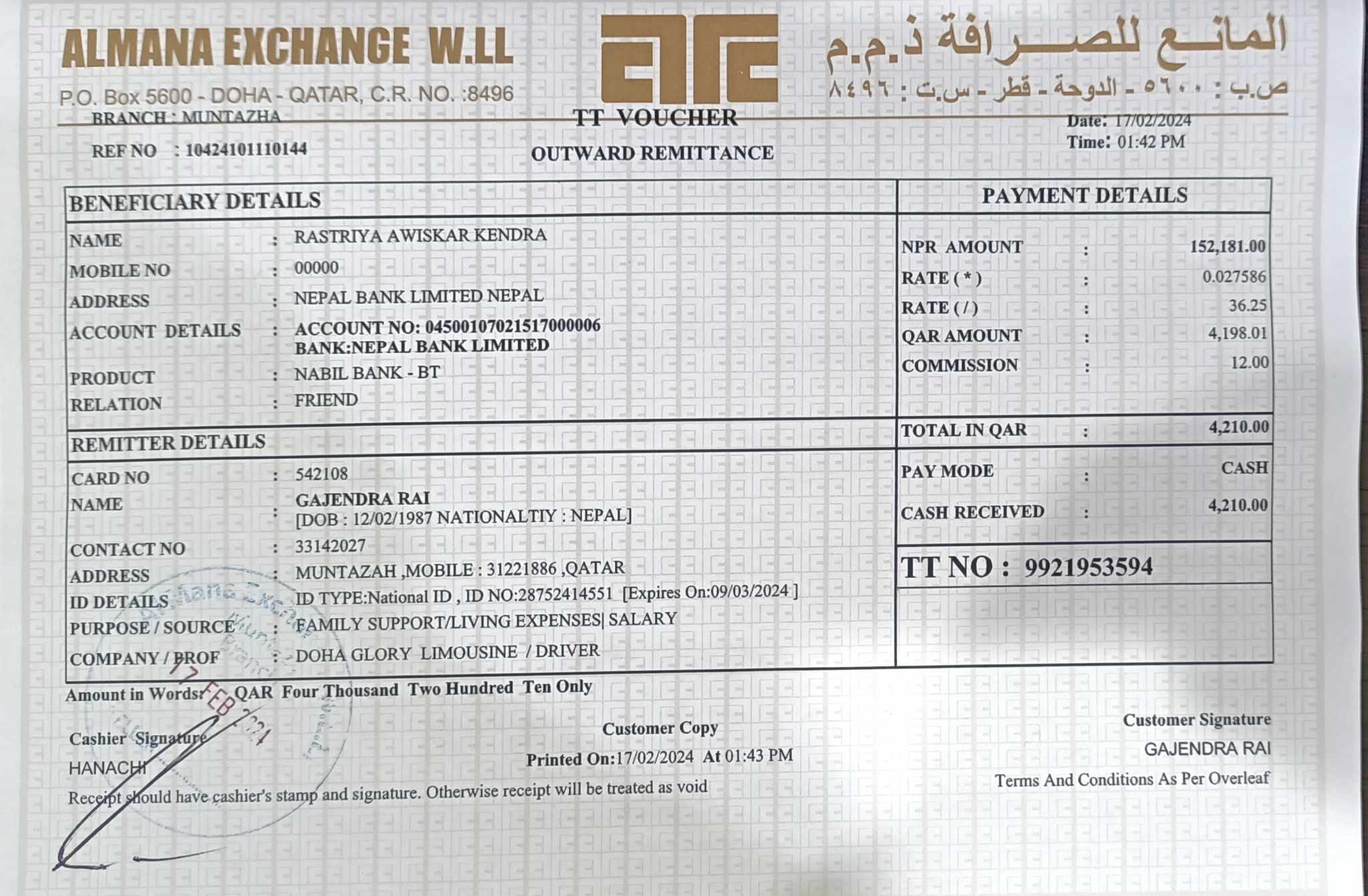 दुर्छिम (खोटाङ) । कतारी १ रियाल अभियानले दुई घन्टामा ४ हजार २१० कतारी रियाल अर्थात् नेपाली १ लाख ५२ हजार १८१ रुपैयाँ संकलन गरी डा. महावीर पुनलाई नेपाल पठाएको छ ।
